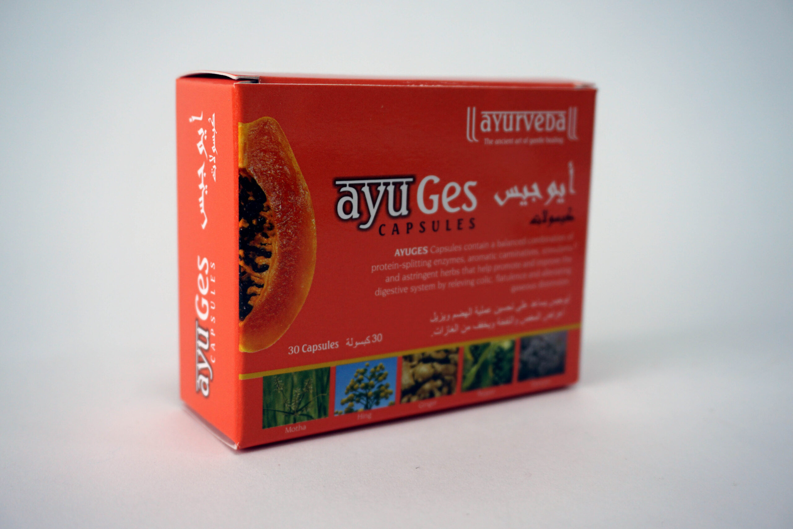 - Enhances absorption of most nutrients into the small intestine. Ayuges contains enzymes, that help in the process of digestion and relieves gas.