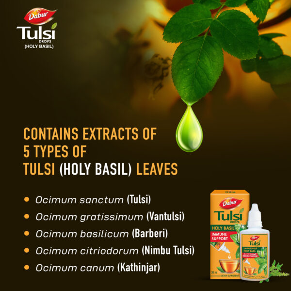 • Dabur Tulsi Drops consists of rare medicinal extracts that help in building the immunity for everyone in your family.