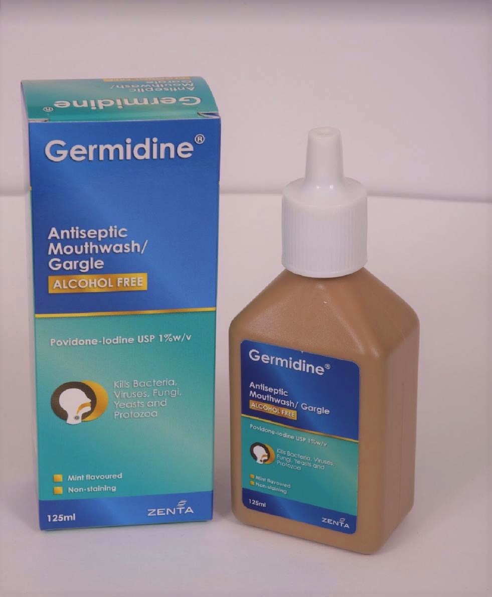 Germidine Antiseptic Mouthwash/Gargle is a fast acting and broad spectrum microbicidal, recommended in case of sore throat and upper respiratory tract infections. Antiseptic gargle for infected inflammatory conditions of mouth and pharynx. Alcohol free and mint flavor. Quick relief from sore throat symptoms . Prevent dental caries.