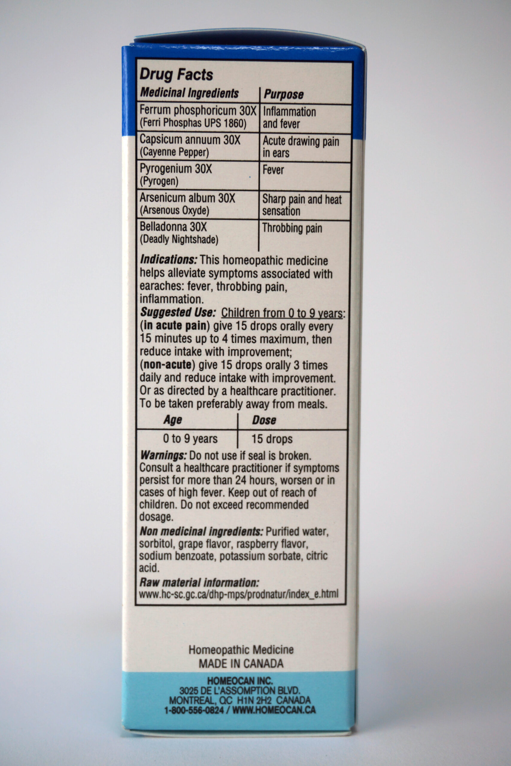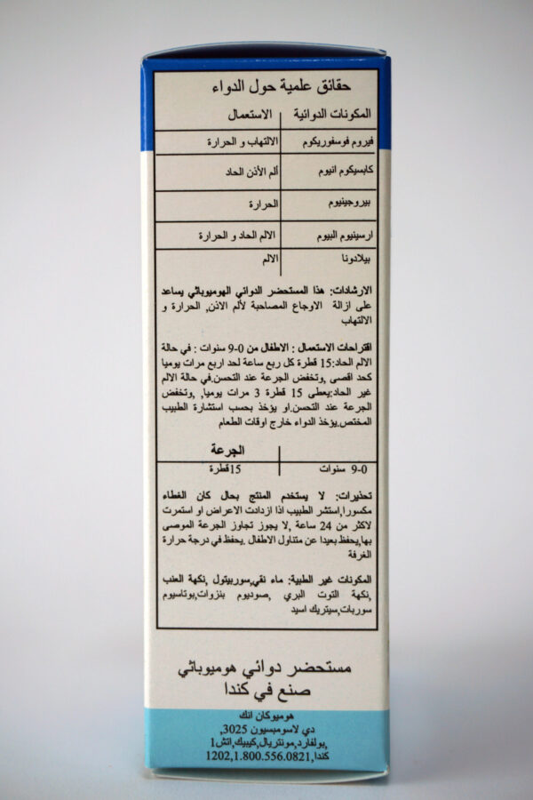 A homeopathic medication that relieves earache symptoms, throbbing pain, inflammation
